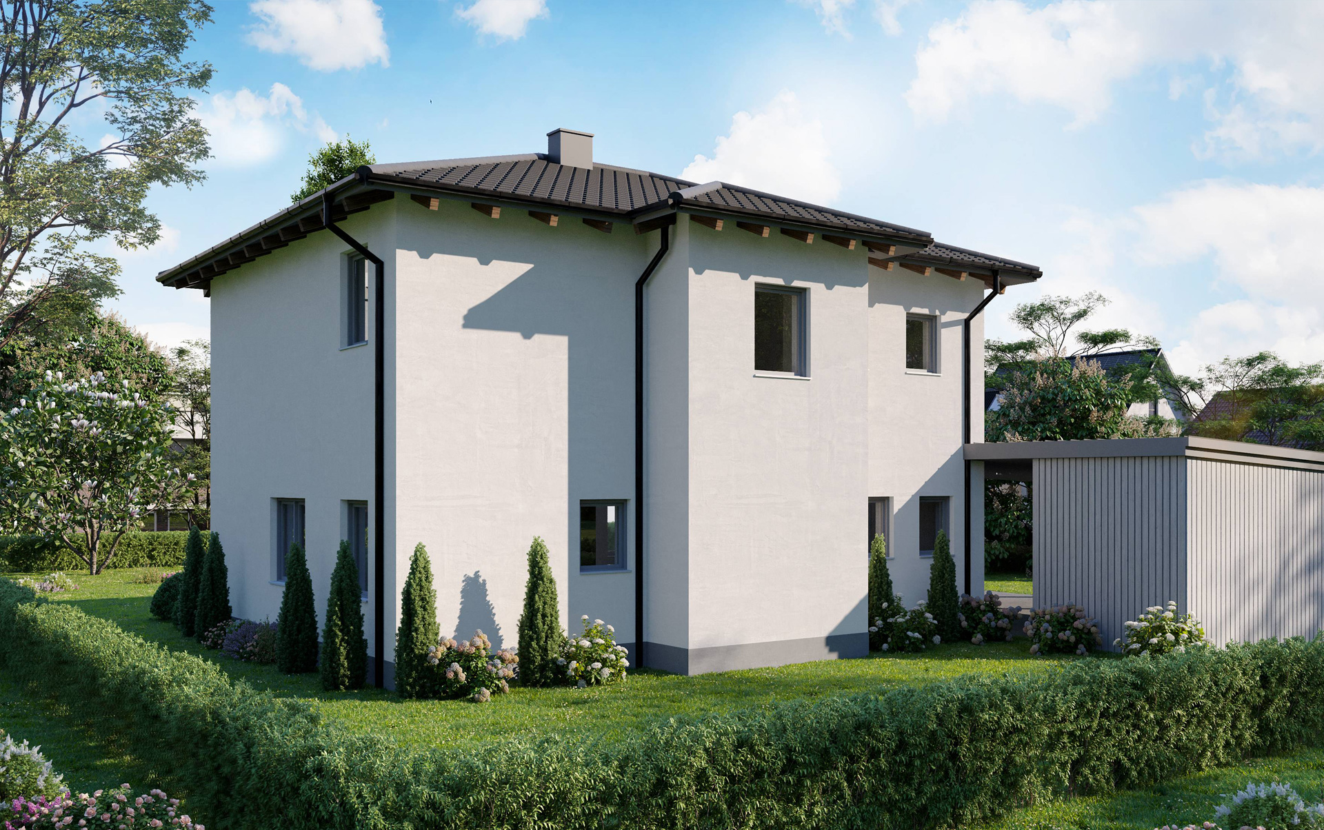 Das Einfamilienhaus NOVA vereint zeitlose Architektur mit moderner Bauweise. Klare Grundrisse, helle Räume und flexible Gestaltungsmöglichkeiten machen es zum perfekten Zuhause für Familien. NOVA passt sich Ihrem Lebensstil an und überzeugt durch langlebige Massivbauqualität, die Generationen überdauert.